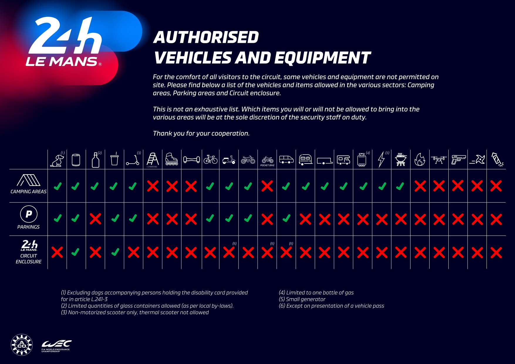 The ACO will maintain its security arrangements as it welcomes spectators to its races. Security checks are carried out for access to the circuit and campsites, including vehicle and bag searches. These measures may entail queues.