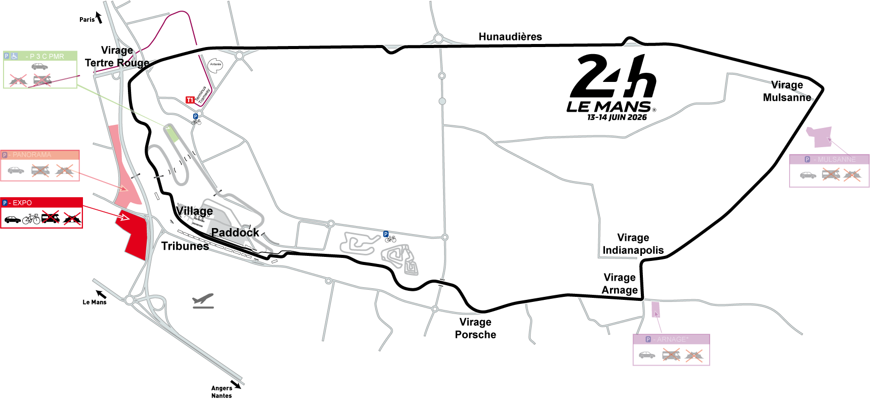 Situé dans l‘enceinte du Centre des Expositions du Mans, ce parking est à privilégier si vous souhaitez accéder aux tribunes de la ligne droite des stands, au Village ou à la zone d'animations (concerts et fête foraine).
